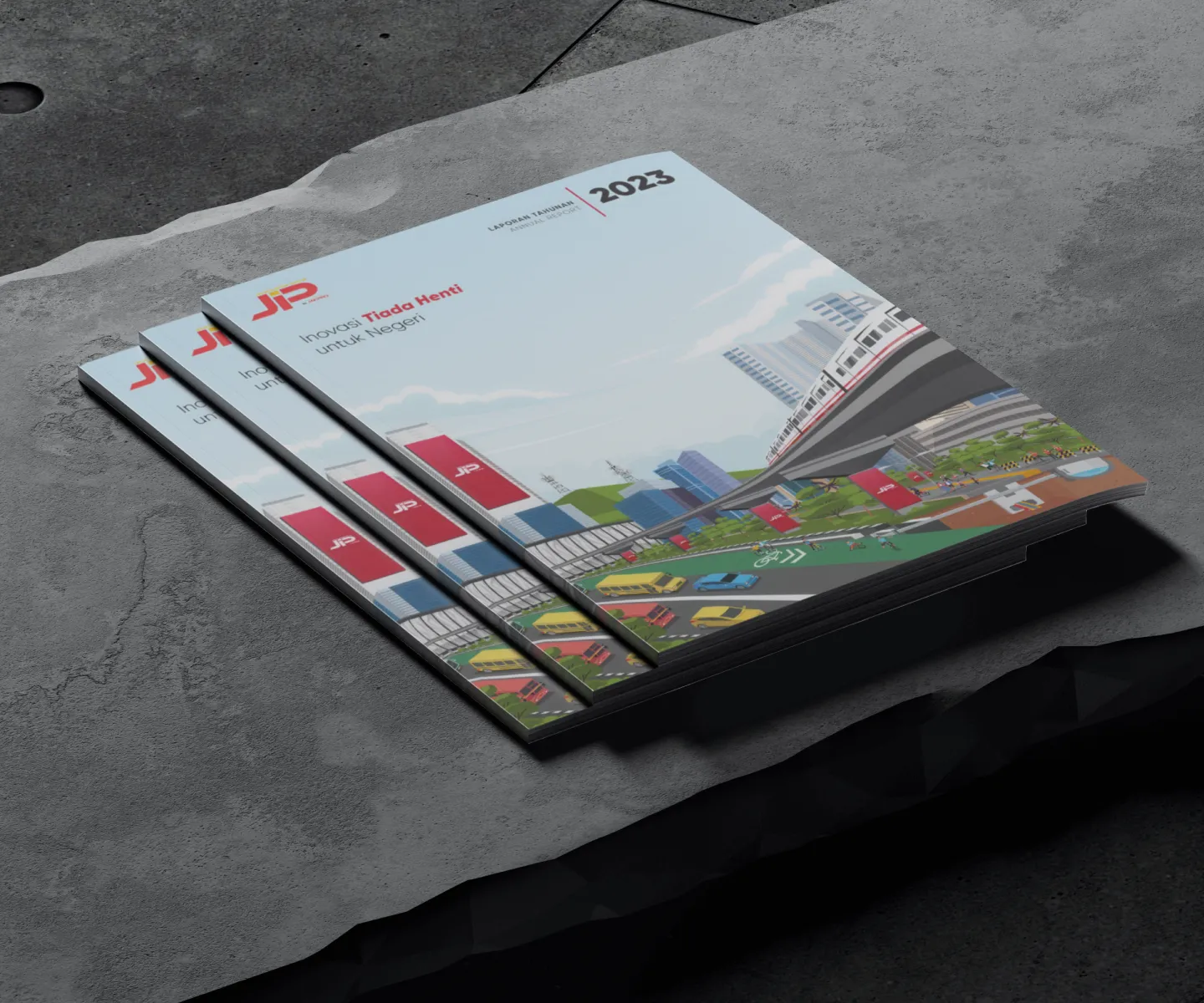 Bata Kreatif dipercaya Jakarta Infrastruktur Propertindo mengerjakan laporan tahunan dengan perpaduan data akurat, desain kuat, & pesan strategis.